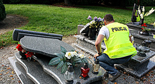 Pijany 32-latek wyrywał wazony i zniszczył płyty nagrobne na cmentarzu komunalnym w Środzie Śląskiej. Łącznie uszkodził 20 nagrobków.