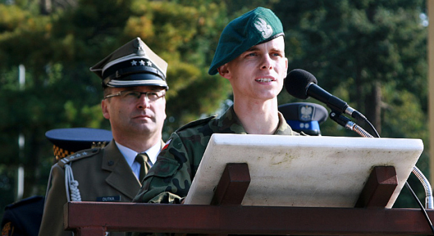 - Służba wojskowa to konstytucyjna powinność wobec narodu polskiego. Obecnie wobec zniesienia obowiązkowego poboru, to osobiste powołanie oraz całkowicie świadomy wybór dorosłego mężczyzny lub kobiety. Tylko od dobrej woli obecnych tutaj żołnierzy oraz ich patriotycznego wychowania zależy, czy staną w szeregach Wojska Polskiego – przemawiał pułkownik Daniel Król.