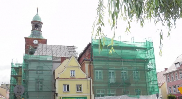 Remont dachu nad częścią ratusza (głównie muzealną) obejmuje m.in. wzmocnienie krokwi, wymurowanie kominów z cegły klinkierowej, pokrycie dachu nową dachówką ceramiczną i wymianę rynien. Już niedługo można będzie obejrzeć budynek w całej swojej okazałości.