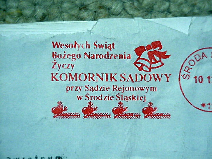 - Zaczynałam wtedy pracę po studiach, jako komornik w Środzie Śląskiej. Szef zamówił wtedy frankownice z logami Świąt Wielkanocnych i Bożego Narodzenia. Logo umieszczało się na kopertach zamiast znaczka pocztowego. Ktoś wysłał list chyba do Sądu Rejonowego w Środzie Śląskiej i potem wybuchła afera – opowiada Monika Janus, obecnie rzeczniczka prasowa Izby Komorniczej we Wrocławiu.