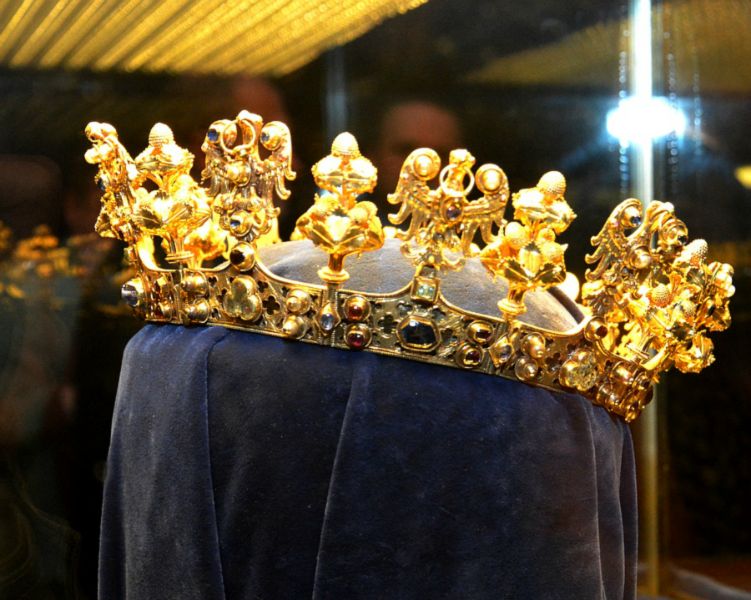 - Korona jest najcenniejszą częścią skarbu. Jej poszczególne segmenty zdobione są naprzemiennie trójlistnymi plakietami z barwną emalią i dużymi szafirami oraz mniejszymi granatami, akwamarynami, szmaragdami, spinelami, tektytami i perłami – informuje Jacek Witecki z Muzeum Narodowego we Wrocławiu.