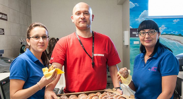 Od godziny 10. wychodzący z basenu klienci są częstowani ufundowanymi przez Średzki Park Wodny oraz Express-Miejski.pl świeżymi, przywiezionymi prosto z piekarni, pachnącymi pączkami.