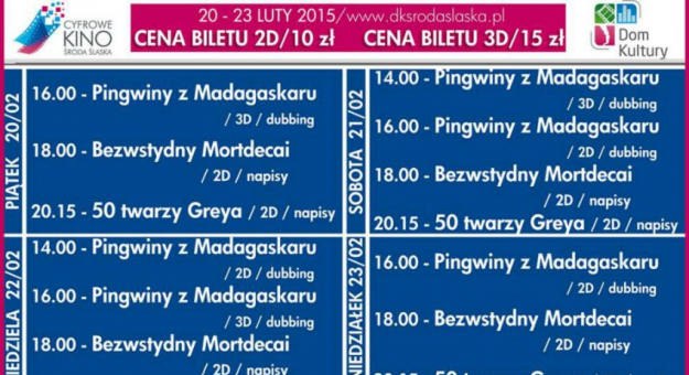 Jak co tydzień przygotowaliśmy dla Was konkurs, w którym do rozdania mamy dwie podwójne wejściówki na najbliższy weekend do Cyfrowego Kina w Środzie Śląskiej.
