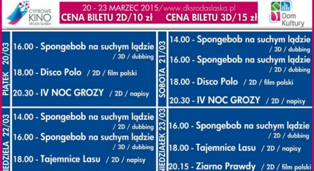 Jak co tydzień przygotowaliśmy dla Was konkurs, w którym do rozdania mamy dwie podwójne wejściówki na najbliższy weekend do Cyfrowego Kina w Środzie Śląskiej.