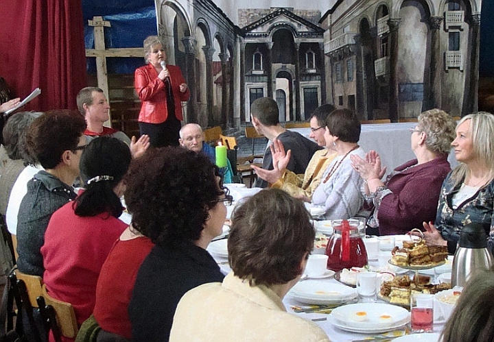 - Po przedstawieniu wszyscy zasiadają do śniadania. Na stołach podawane są tradycyjne potrawy wielkanocne: żurek, biała kiełbasa, jajka i ciasta – mazurki i babki. Wszystko przygotowują terapeuci oraz uczestnicy – opowiada jeden z organizatorów.
