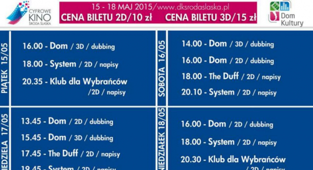 Jak co tydzień przygotowaliśmy dla Was konkurs, w którym do rozdania mamy dwie podwójne wejściówki na najbliższy weekend do Cyfrowego Kina w Środzie Śląskiej.