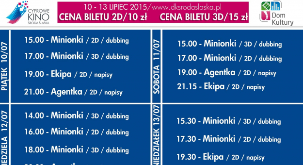 Jak co tydzień przygotowaliśmy dla Was konkurs, w którym do rozdania mamy dwie podwójne wejściówki na najbliższy weekend do Cyfrowego Kina w Środzie Śląskiej.
