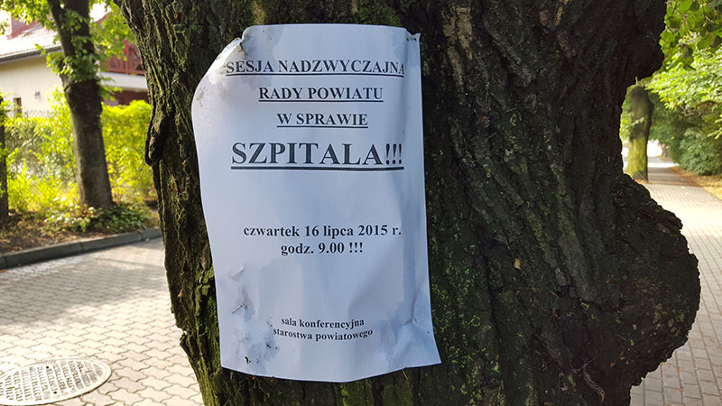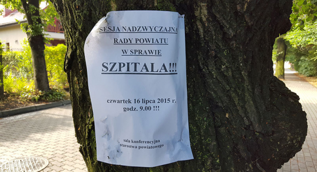 W sesji może wziąć udział każdy zainteresowany tematem szpitala mieszkaniec powiatu. Dziś też na terenie Środy Śląskiej pojawiły się ogłoszenia o planowanych obradach, zamieszczane między innymi na witrynach sklepowych oraz na drzewach.