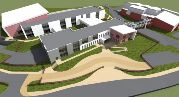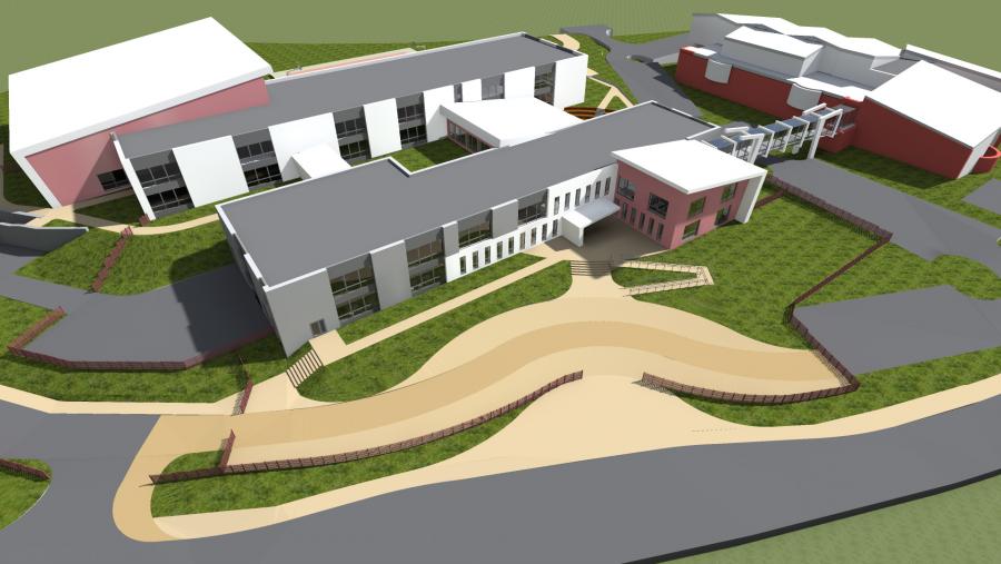 Wizualizacja nowego gimnazjum na średzkiej Winnej Górze, od strony wschodniej połączonego z obiektem Średzkiego Parku Wodnego fot.: UM