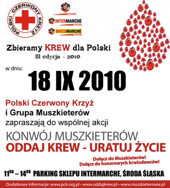 18 września 2010 roku Polski Czerwony Krzyż oraz Grupa Muszkieterów z Intermarche zapraszają do wspólnej akcji pod nazwą Konwój Muszkieterów.