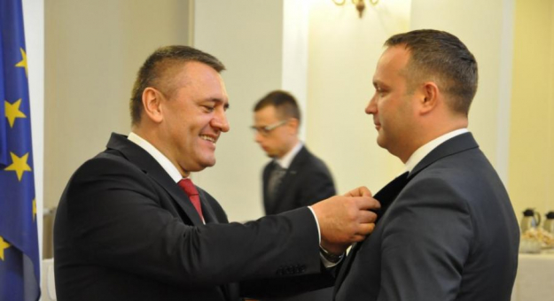 Wojewoda - w imieniu Ministra Administracji i Cyfryzacji - uhonorował także osoby zasłużone na rzecz samorządu terytorialnego wręczając im Odznaki Honorowe za Zasługi dla Samorządu Terytorialnego. W tym gronie wyróżnieni zostali między innymi średzki starosta Sebastian Burdzy oraz Maciej Awiżeń - starosta kłodzki.