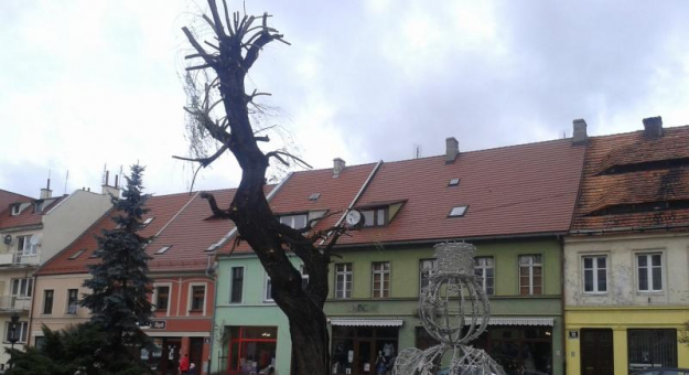 Światełka, choinka, duże ceramiczne donice, ławki, nowe parkingi, a gdzie w tym wszystkim miejsce na zieleń? Na przyrodę? Panie Burmistrzu, czy może Pan nam, mieszkańcom, powiedzieć, dlaczego tak oszpecono drzewo, a co za tym idzie i skwerek obok fontanny? Czy nie powinniśmy raczej dbać o resztki roślinności, jaka pozostała w naszym centrum? Czy liczą się tylko kolejne miejsca parkingowe?