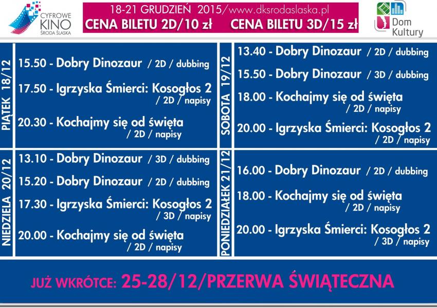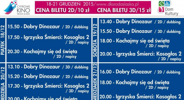 Na grudniowe wieczory mamy dla Was do wygrania dwie podwójne wejściówki na najbliższy weekend do Cyfrowego Kina w Środzie Śląskiej.