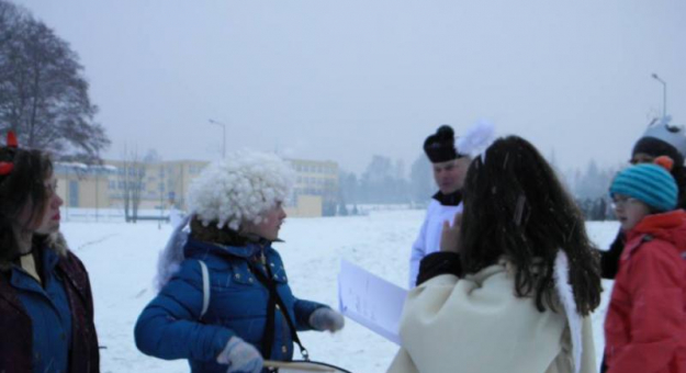 - W dniu 6 stycznia, popularnie nazywanym Świętem Trzech Króli, w naszej parafii odbył się po raz pierwszy uroczysty pochód trzech króli. Po mszy z godziny 11, podążając za trzema królami udaliśmy się pod Urząd Gminy Miękinia, który dziś służył za zamek króla Heroda i jego żony - opowiada o wydarzeniu Małgorzata Lalewicz, administratorka strony parafii w Miękini. - Trzej królowie usiłowali uzyskać informacje na temat miejsca, w którym przyszedł na świat mały Jezus. Niestety Herod jak to Herod informacji nie udzielił, a informacja o nowo narodzonym królu bardzo go wystraszyła i spowodowała gniew władcy. Z pomocą zagubionym królom przyszedł anioł. Królowie czym prędzej udali się do szopki. Oprócz małego Jezusa, Maryi i Józefa, w szopce byli również kolędujący pastuszkowie - opowiada dalej pani Małgorzata.