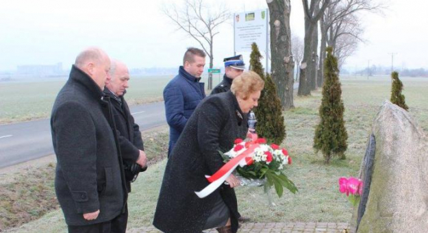 Dla uczczenia pamięci poległych na służbie - pilota Janusza Cygańskiego i ratownika Czesława Buśko, pod obeliskiem w Jarostowie, niedaleko miejsca wypadku Wójt Gminy Udanin Teresa Olkiewicz, Przewodniczący Rady Gminy Udanin Janusz Strzelecki, Radny Gminy Udanin Zdzisław Semczuk, Komendant Gminny OSP Lesław Wasylów oraz Sołtys wsi Jan Becheba złożyli kwiaty oraz zapalili znicze. fot.: UG
