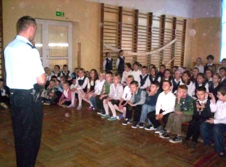 Aby uchronić najmłodzszych mieszkańców naszego powiatu przed nieszczęśliwymi wypadkami na drodze, policjanci z Komendy Powiatowej Policji w Środzie Śląskiej przeprowadzili pogadankę na temat bezpiecznej drogi do i ze szkoły. Dzieci dowiedziały się, jak powinny się zachowywać, by uniknąć zagrożeń, co zrobić, by być bardziej widocznym wcześnie rano i wieczorem. Jest to tym bardziej ważne teraz w okresie jesienno-zimowym, kiedy wcześnie rano jest jeszcze ciemno i gdy szybko zapada zmrok. Uczniowie wspólnie z policjantami powtórzyli sobie podstawowe zasady bezpieczeństwa w ruchu drogowym oraz numery alarmowe. Nie mogło oczywiście zabraknąć rozmowy na temat osoby "obcej" oraz sytuacji, kiedy dziecko zostaje samo w domu. Ważnym elementem spotkania było zwrócenie uwagi na bezpieczeństwo w szkole na przerwach i we wzajemnych relacjach.