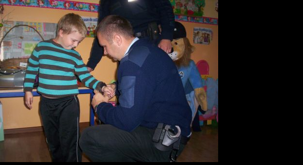 Dzieci z Przedszkola w Malczycach długo będą wspominać wizytę policjantów ze Środy Śląskiej i Malczyc. Kilku chłopców na własnej skórze, a dokładniej mówiąc na własnych rękach, przekonało się, jak to jest mieć założone kajdanki oraz ile waży pas policjanta, na którym nosi środki przymusu bezpośredniego.