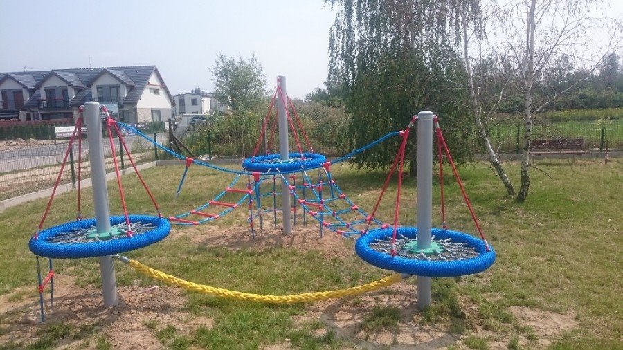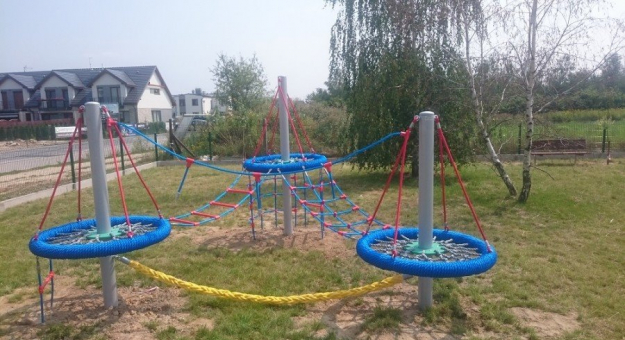 Plac zabaw jest już wzbogacony o huśtawki, karuzele, bujaki i tor z przeszkodami. Dodatkowo teren został ogrodzony.