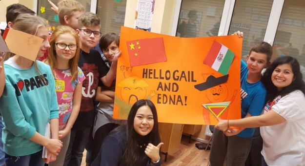 W ramach Tygodnia Edukacji Globalnej organizowanego po raz pierwszy w szkole podstawowej w Udaninie z wizytą przyjechały wolontariuszki - Li Gail z Chin i Edna z Meksyku.
