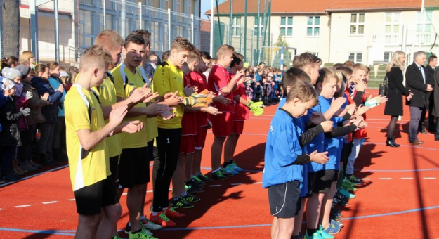 Po części oficjalnej rozpoczęło się prawdziwe sportowe święto. Uczniowie ze szkoły podstawowej i gimnazjum rozegrali pierwsze mecze inaugurujące otwarcie boiska.