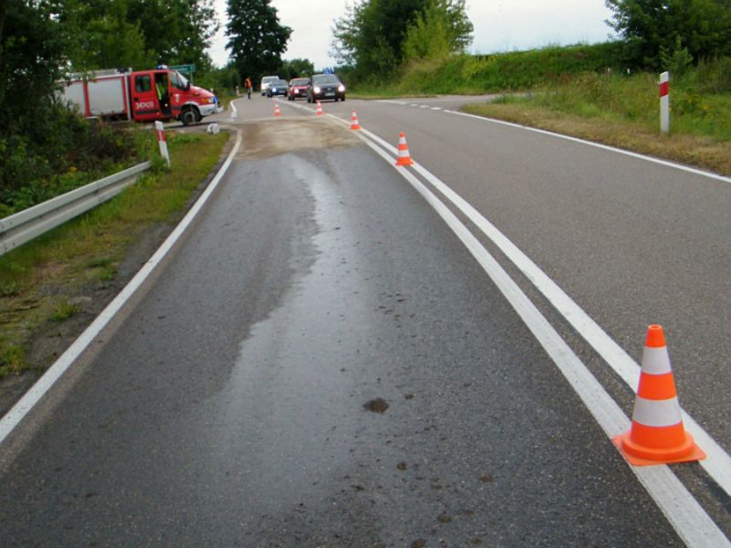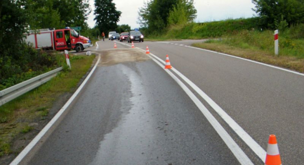 Olej z uszkodzonego samochodu wylał się na drodze krajowej 94 od miejscowości Komorniki przez Środę Śląską do Jastrzębiec. Strażacy zneutralizowali substancję sorbentem.