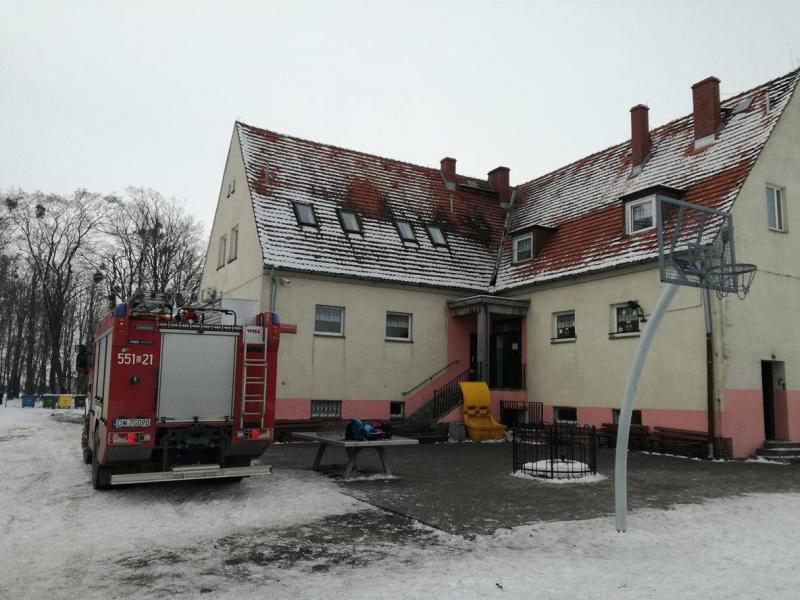 Dyżurny stanowiska kierowania w Państowej Straży Pożarnej w Środzie Śląskiej otrzymał dziś rano zgłoszenie o pożarze w szkole w Lutyni.