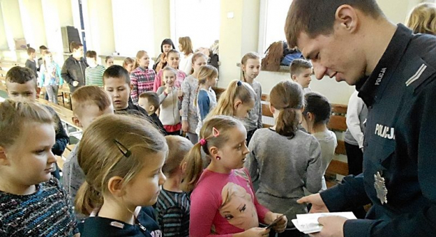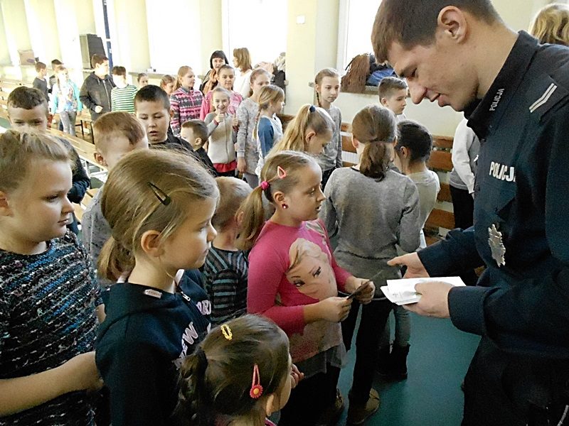 Tym razem policjanci odwiedzili uczniów Szkoły Podstawowej nr 3 i Przedszkola Publicznego nr 1 w Środzie Śląskiej. W spotkaniach wzięło łącznie udział ponad 800 uczniów z klas I-VI i przedszkolaków. Policjanci rozmawiając z dziećmi o bezpieczeństwie wykorzystali prezentację multimedialną oraz specjalnie przygotowane w tym celu materiały edukacyjne w postaci kolorowych plansz i ulotek.