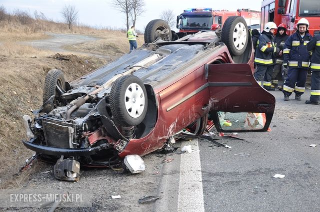 Samochód osobowy marki Peugeot dachował. Przyczyną prawdopodobnie było niedostosowanie prędkości do warunków panujących na drodze. Na miejsce zadysponowano straż pożarną, która zabezpieczyła miejsce zdarzenia. Zadaniem strażaków było również odłączenie akumulatora w pojeździe. - 21-letnia kobieta była przytomna i samodzielnie opuściła pojazd - informuje dyżurna stanowiska kierowania Państwowej Straży Pożarnej ze Środy Śląskiej. Na miejscu był również zespół ratownictwa medycznego i policja.