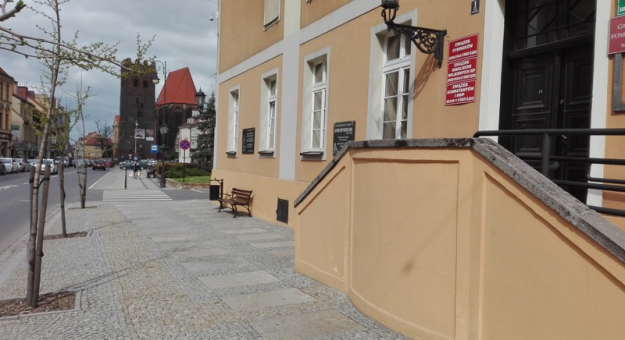 Po południowo-zachodniej stronie bloku śródrynkowego w Środzie Śląskiej jest obecnie szeroki chodnik.
