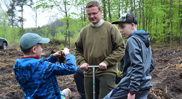 Ksiądz wspólne sadzenie lasu zorganizował przy pomocy Nadleśnictwa Miękinia. - Jestem wielkim sympatykiem lasu, a pan nadleśniczy Waldemar Zaremba jest wielkim przyjacielem i dobrodziejem naszej liturgicznej służby. Bierze m.in. udział w naszym balu charytatywnym. Dzisiejszą akcją chcieliśmy się odwdzięczyć za wszelką pomoc jaką otrzymaliśmy. Jednak dzisiejsze sadzenie to okazja, aby pokazać chłopcom i ich rodzicom jak niewiele potrzeba by czynić dobro - mówi ks. Polański i dodaje, że jedną z motywacji do uczestnictwa młodych ludzi w akcji był fakt, iż dzięki temu będą mieli własne miejsce w lesie. - Kiedyś ci chłopcy będą mogli przyjechać tu być może ze swoimi dziećmi i pokażą im ten malutki fragment lasu, który jest ich dziełem - dodaje ksiądz.