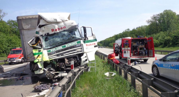 Po godz. 13 na autostradzie A4 na wysokości miejscowości Kostomłoty doszło do dwóch wypadków z udziałem samochodów ciężarowych. Ranny został jeden z kierowców.