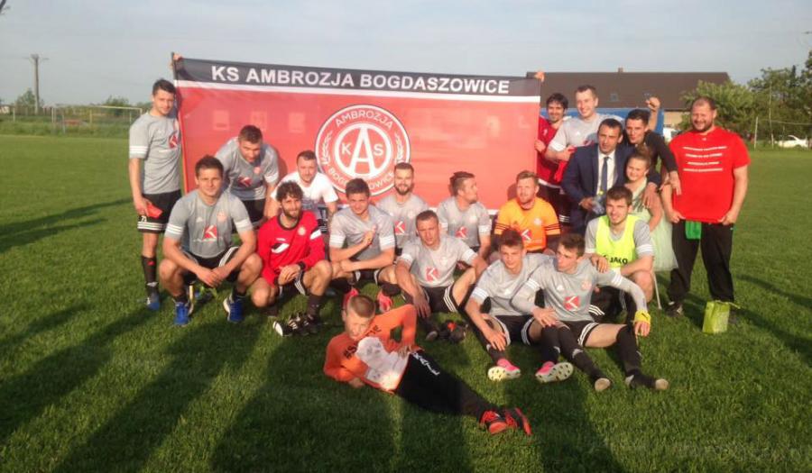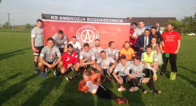 Ambrozja Bogdaszowice to drużyna piłkarska z gminy Kąty Wrocławskie, która w sezonie 2016/2017 swoje mecze rozgrywała w IV grupie wrocławskiej B-klasy. Po rewelacyjnym sezonie na 3 spotkania przed końcem zespół z Bogdaszowic zapewnił sobie awans do A-klasy. - Klub powstał w 2003 roku. Po założeniu stowarzyszenia dostaliśmy możliwość gry w B-Klasie – mówi Sebastian Żurawski. Po 21 kolejkach Ambrozja zgromadziła 60 punktów, tylko raz przegrywając. - Postawę zawodników oceniam bardzo dobrze, ciężko pracują na treningach czego efektem są wyniki w meczach ligowych - dodaje prezes. Które spotkanie w tym roku było dla Ambrozji najtrudniejsze?. - Najtrudniejszym meczem w tej rundzie okazał się wyjazd do Czerńczyc, gdzie wygraliśmy 0:2. Słabe przygotowanie boiska nie sprzyjało dobremu widowisku - dodaje.