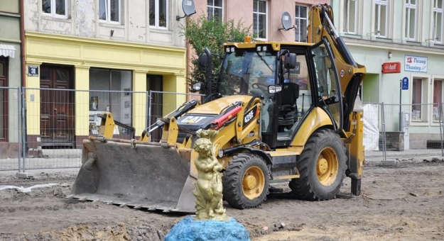 Od tygodnia krajobraz na średzkim rynku ulega szybkiej zmianie. Ścięto drzewa, krzewy, zdemontowany kamienny krąg i obecnie aniołka, który niegdyś zdobił fontannę.