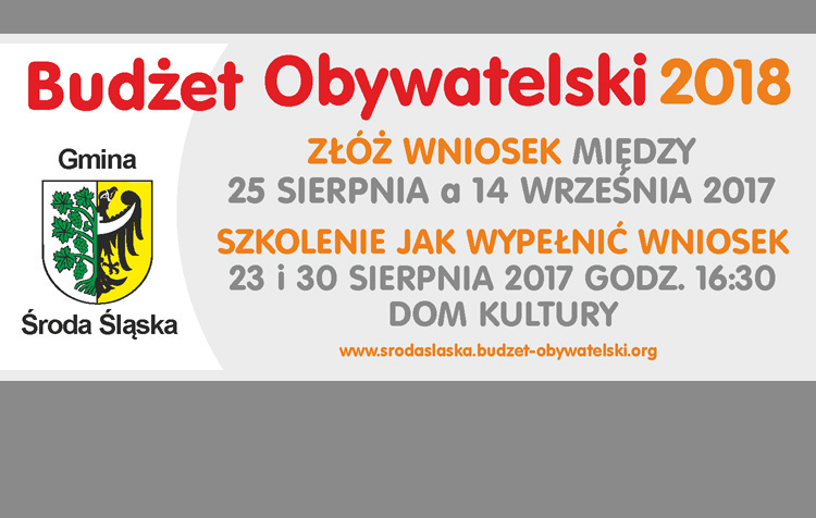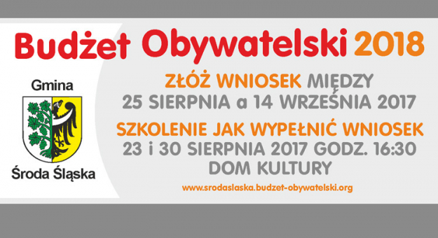 30 sierpnia o godz. 16:30 w Domu Kultury w Środzie Śląskiej odbędzie się szkolenie z Budżetu Obywatelskiego. Właśnie startuje pierwsza pilotażowa edycja programu.