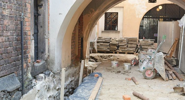 Na dziedzińcu Muzeum Regionalnego w Środzie Śląskiej trwają prace związane z renowacją części muzealnej i dawnego ratusza.