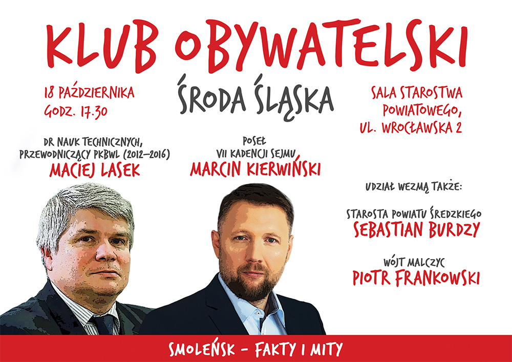 Starosta powiatu średzkiego wraz z wójtem Malczyc zapraszają na spotkanie poświęcone katastrofie smoleńskiej pt. „Smoleńsk – fakty i mity”.