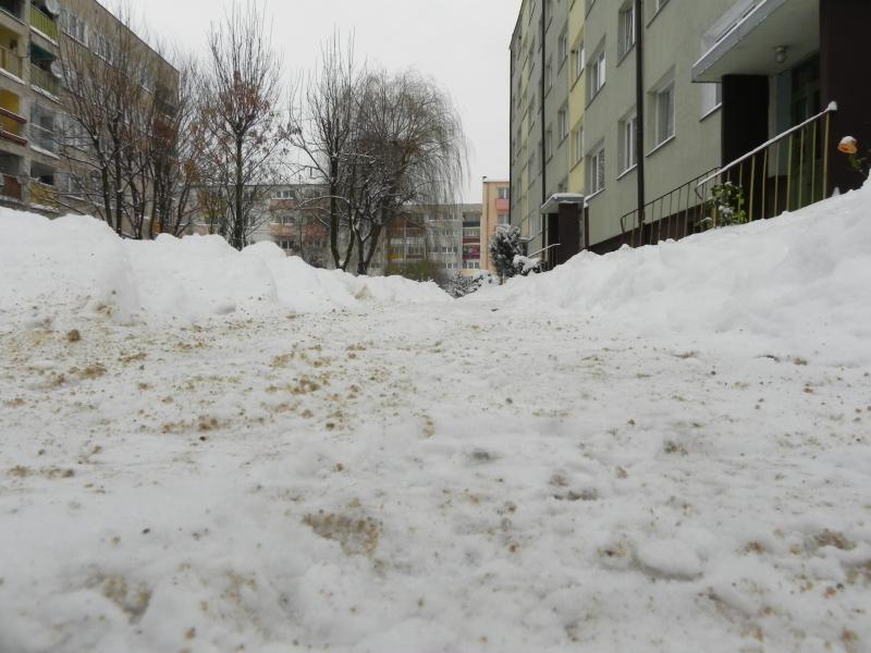 Jak to wygląda w naszym mieście sami widzimy. Właściciele lokali handlowych i usługowych położonych przy głównej ulicy o swoim obowiązku nie zapomnieli. Nie jest już tak dobrze w przypadku chodników usytuowanych w dalszej odległości od centrum miasta. Największy problem jest jak co roku z terenami należącymi do spółdzielni mieszkaniowych, zwłaszcza w okolicach dworca PKS. Zarówno chodniki, ścieżki jak i wejścia do chodników są pokryte grubą warstwą śniegu. Odbieramy wiele skarg od mieszkańców. Powtarza się sytuacja sprzed roku, kiedy mieszkańcy nie mogli sie doprosić o uprzątnięcie śniegu i zabezpieczenie pokrytych lodem chodników. Również obowiązku tego nie dopełniają spółdzielnie jeżeli chodzi o parkingi będące pod ich zarządem i drogi dojazdowe do poszczególnych budynków usytuowanych na terenie osiedli mieszkaniowych.