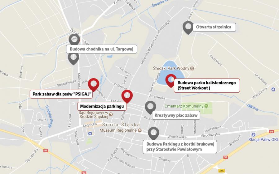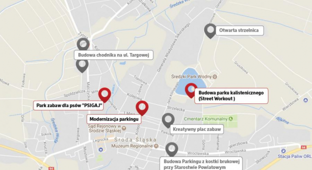 Wymienione w tytule zadania zostaną zrealizowane w ramach pierwszej edycji budżetu obywatelskiego realizowanego na terenie miasta Środa Śląska.