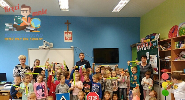 Podczas wizyty dzielnicowy szczególnie dużo miejsca poświęcił zasadom poruszania się po drodze jako pieszy oraz bezpiecznego podróżowania samochodem. Policjant przypomniał o obowiązku przewożenia dzieci w fotelikach lub innych urządzeniach, a także zapinania pasów bezpieczeństwa. - Zwrócił uwagę dzieciom na to, jak ważne są elementy odblaskowe, szczególnie teraz w okresie jesienno-zimowym, kiedy widoczność na drodze jest gorsza. Aby maluchy lepiej zapamiętały wizytę dzielnicowego, a także jego wskazówki dotyczące bezpieczeństwa na drodze, wszystkie otrzymały elementy odblaskowe - opowiada oficer prasowy Komendy Powiatowej Policji w Środzie Śląskiej Marta Stefanowska.
