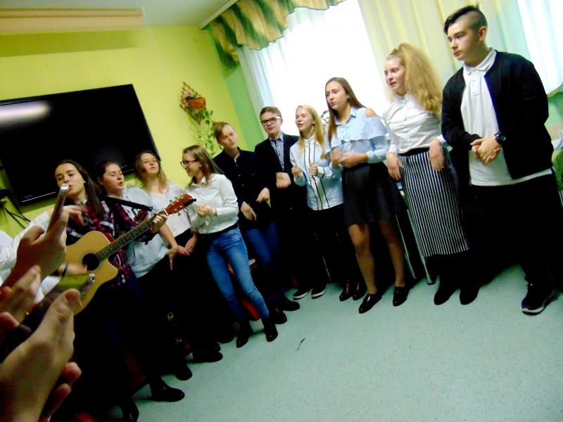 Po zakończeniu programu były życzenia wyśpiewane przez pensjonariuszy dla młodzieży, a także chwila pogawędki z nimi. Uczniowie wrócili do szkoły ogromnie wzruszeni tą wizytą.