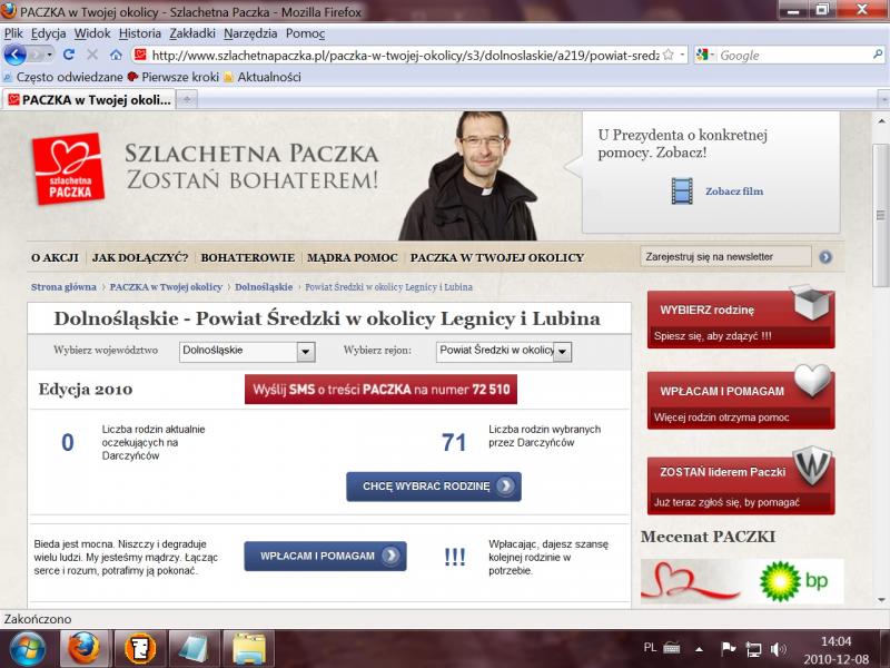 Dzisiaj przed południem ostatnia rodzina z bazy SZLACHETNEJ PACZKI została wybrana przez darczyńcę. Jest to ogromny sukces akcji w naszym powiecie. Dzięki darczyńcom i wolontariuszom tegoroczne święta w rodzinach objętych pomocą będą szczególnie radosne. Lider Rejonu – Barbara Dziadowicz zaprasza serdecznie wszystkich na finał akcji, który odbędzie się w dniach 10 do 12 grudnia w świetlicy wiejskiej w Chomiąży.
