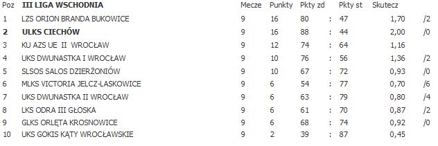 Pierwsza drużyna Uczniowskiego Ludowego Klubu Sportowego rozgrywa swoje mecze w III lidze wschodniej. Po pierwszej rundzie, w której rozegrano 9 spotkań tenisiści stołowi z ciechowskiego klubu plasują się na drugiej pozycji z takim samym dorobkiem punktowym jak lider z Bukowic. Natomiast drugi zespół po siedmiu kolejkach traci do pierwszego zespołu 4 punkty w tabeli V ligiwrocławskiej grupy B.