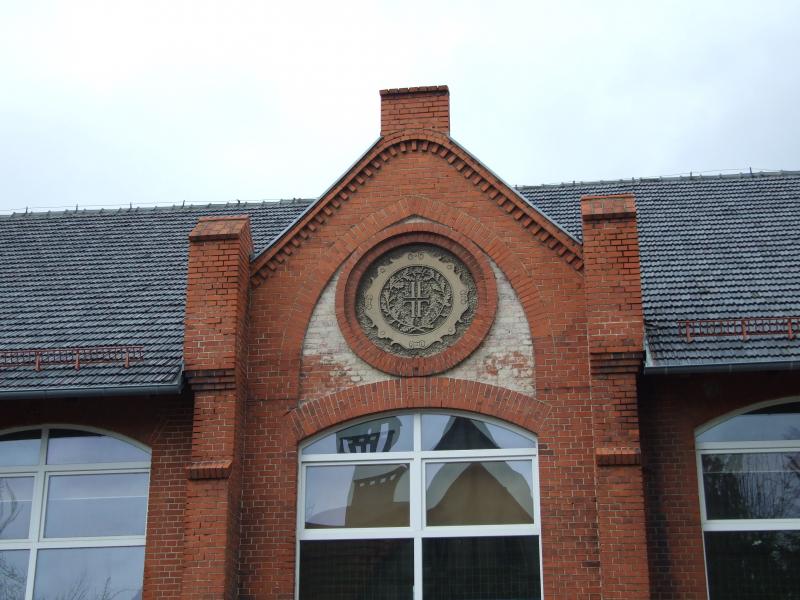 Na południowej ścianie hali sportowej przy ul. 1 Maja w Środzie Śląskiej znajduje się okrągłe tondo (w tym przypadku płaskorzeźba).