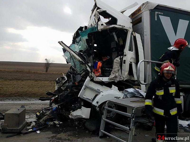 Do wypadku doszło o godzinie 11:40 na 145 kilometrze A4 przed zjazdem na Pietrzykowice. - W zdarzeniu brały udział trzy samochody ciężarowe. Sytuacja wyglądała tak, lewym pasem ruchu poruszał się tir marki MAN, na jego tył najeżdza SCANIA a na nią jeszcze MAN, kierowca ostatniego pojazdu zostaje zakleszczony w kabinie. Zostaje przetransportowany do szpitala, ma ogólne potłuczenia i drobne urazy, ale jego życiu nie zagraża niebezpieczeństwo. Wszyscy kierowcy trzeźwi. - informuje Łukasz Dutkowiak oficer prasowy KMP we Wrocławiu.