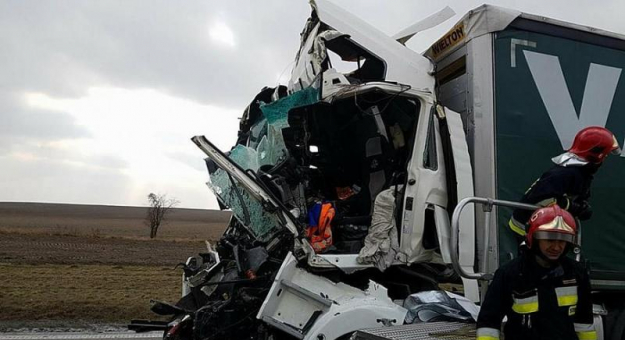 Na 145 kilometrze autostrady A4 zderzyły się trzy samochody ciężarowe. W wyniku zderzenia jeden z kierowców był zakleszczony w pojeździe.