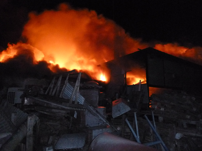 W wykonane otwory w dachu obiektu podawano jeden prąd piany średniej z drabiny mechanicznej w celu ograniczenia rozprzestrzeniania się ognia.