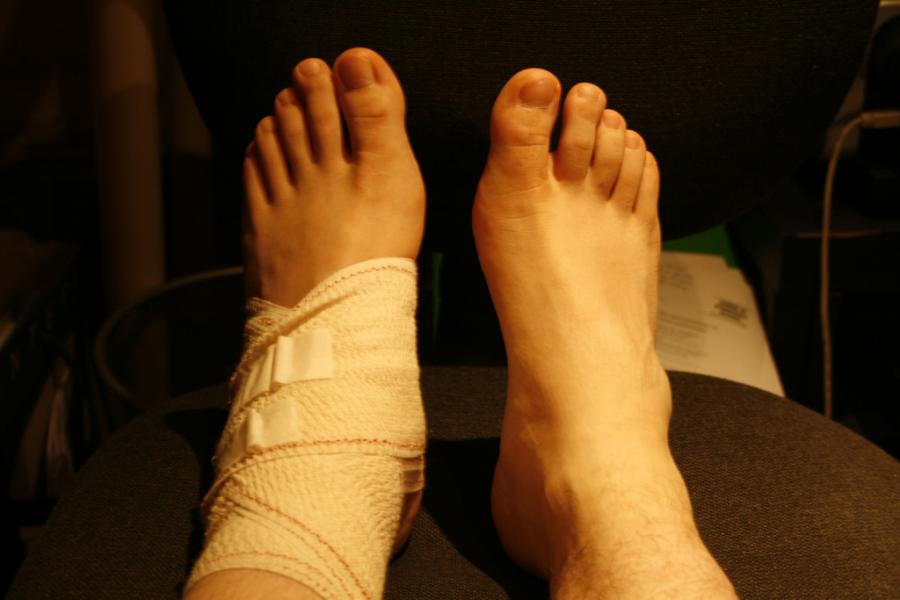 3-tygodniowym unieruchomieniu i odciążeniu,powrót do sprawności i aktywności,bywa bardzo długi. Z moich doświadczeń najlepszym rozwiązaniem jest ochrona kontuzjowanego stawu skokowego, odpoczynek, przynajmniej 2 – 3 dni, okład z lodu, ucisk stawu np. bandażem elastycznym oraz zapobiegające obrzękom uniesienie nogi (tzw protokół PRICE – protection, rest, ice, compression, elevation), daje on w mojej opinii najlepsze rezultaty.