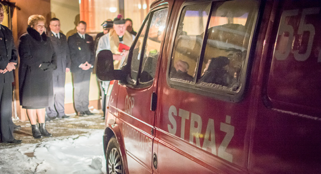 Oficjalne wprowadzenie samochodu do podziału nastąpiło tuż po spotkaniu sprawozdawczym strażaków, które odbyło się w sobotę 17 marca. Uroczystego poświęcenia auta dokonał ksiądz Stanisław Przerada. W wydarzeniu udział wzięli także Adam Konieczny – komendant wojewódzki PSP, Marek Wawrejko - komendant PSP w Środzie Śląskiej, Lesław Wasylów - komendant gminny OSP, druhowie z zarządu gminnego OSP, Teresa Olkiewicz - wójt gminy Udanin, a także Grzegorz Pierzchalski - wicestarosta powiatu średzkiego.