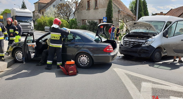 Na skrzyżowaniu Wrocławskiej z ulicą Sobótki doszło do zderzenia busa z samochodem osobowym. Ruch w mieście zatrzymał się.