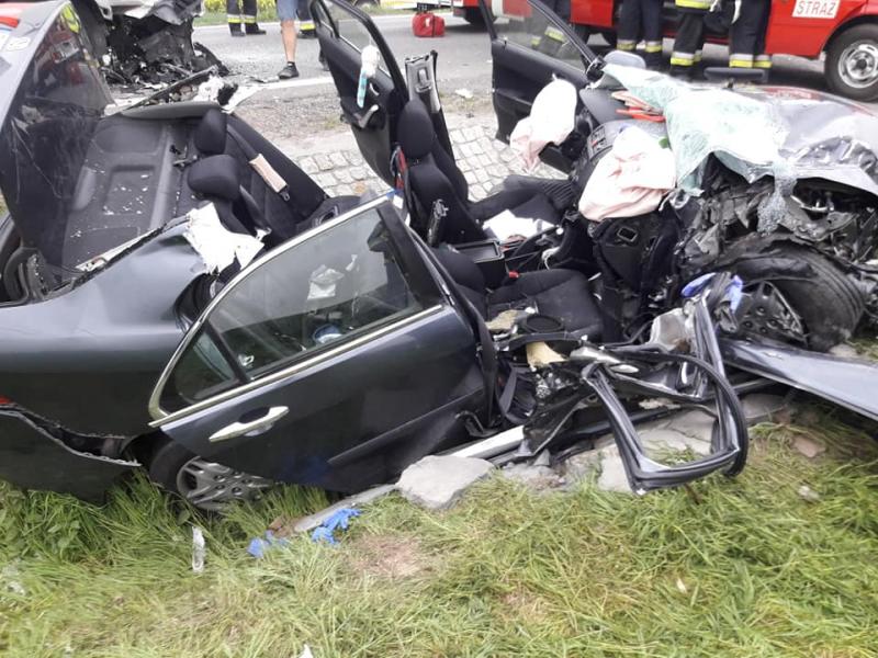 Zdarzenie miało miejsce 3 maja przed godziną 17. Samochód osobowy zderzył się z pojazdem ciężarowym i wylądował w przydrożnym rowie wyłożonym kostką brukową. W wyniku tego wypadku ucierpiały cztery osoby, w tym dwójka małych dzieci. Na miejsce wezwano śmigłowiec Lotniczego Pogotowia Ratunkowego. Interweniowało również pięć zastępów straży pożarnej, dwa zespoły ratownictwa medycznego i policja. Droga była zablokowana do godziny 19.30.